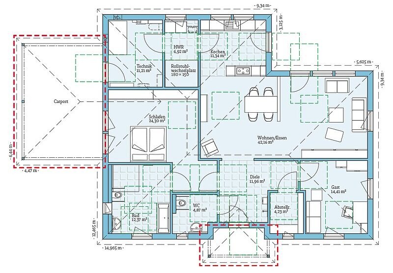 Raspored ove montažne kuće od 139 m² posebno je pogodan za udoban i nesmetan život u kasnijim godinama. Sve prostorije nalaze se na jednom nivou i lako su dostupne bez potrebe za korišćenjem stepenica, što doprinosi većoj sigurnosti i praktičnosti.