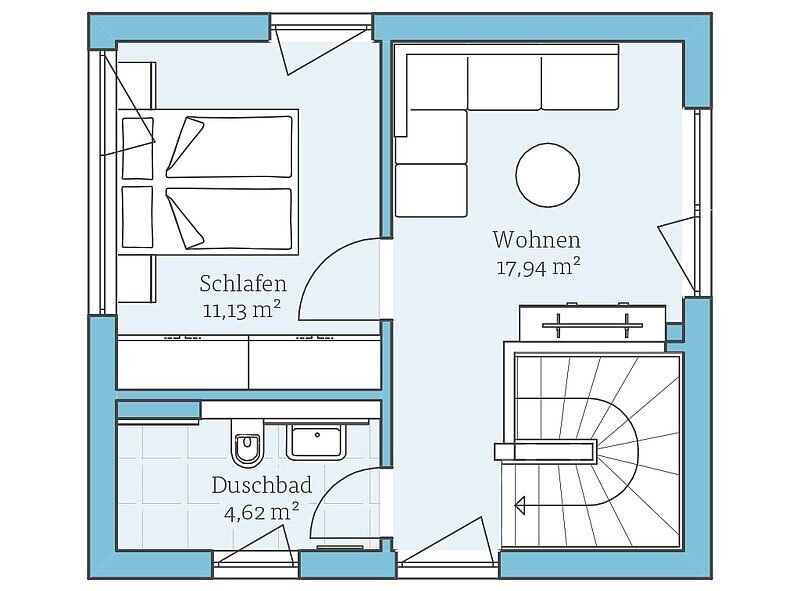 Zbog manjeg gabarita, prostor je organizovan na dva nivoa: u prizemlju se nalaze svetao dnevni boravak sa trpezarijom, tehnička prostorija i toalet, dok se na spratu nalaze prostran dnevni deo, kupatilo i spavaća soba sa velikim kapacitetom za odlaganje. Prostor ispod stepeništa dodatno je iskorišćen kao praktična ostava.